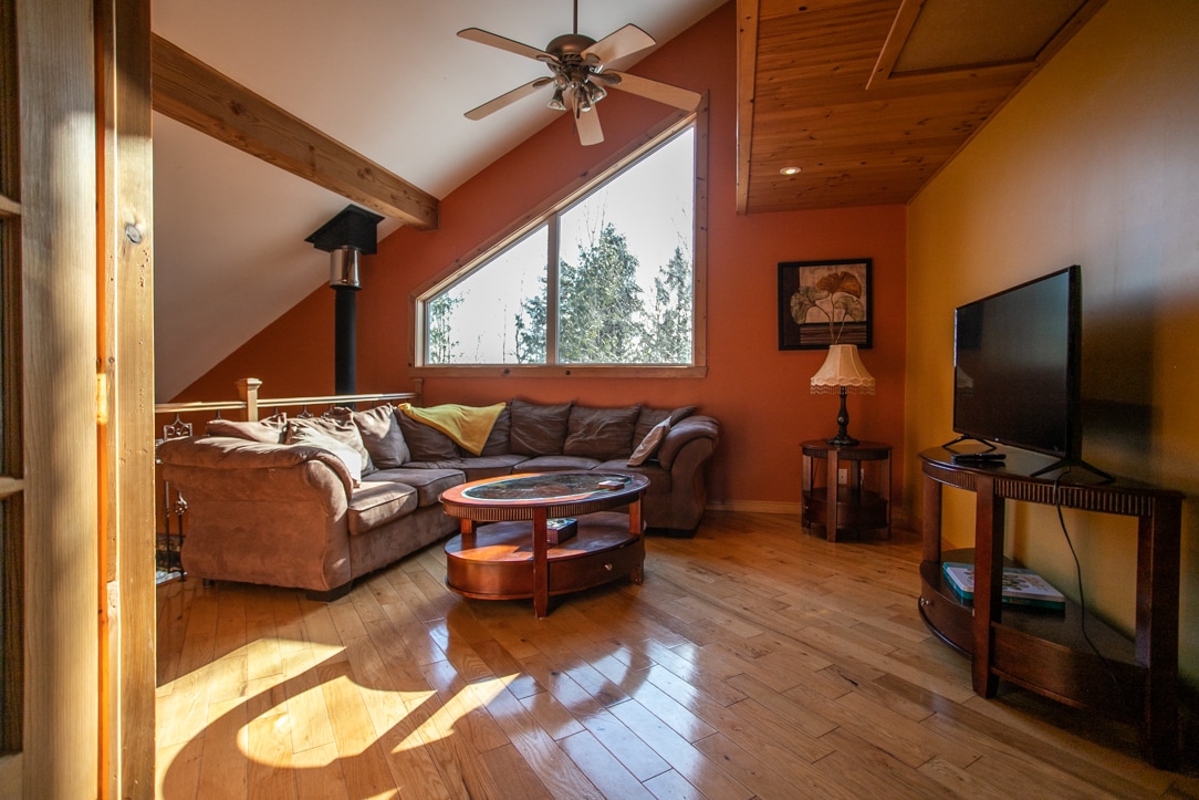 Located along the Red River on a 8 acre property, you’ll have the entire chalet to yourself. Designed to give you privacy and beautiful views of surrounding farmland, it is a great place to relax. Chickens roam free in the summer. Wood stove fireplace for the cold days. Beautiful beach nearby. Activities for the whole family in Mont Tremblant just 15 minutes away, rock climbing at Montagne d’Argent, or simply spend your day relaxing at the farm. Quiet roads nearby for biking or walking the dog.
