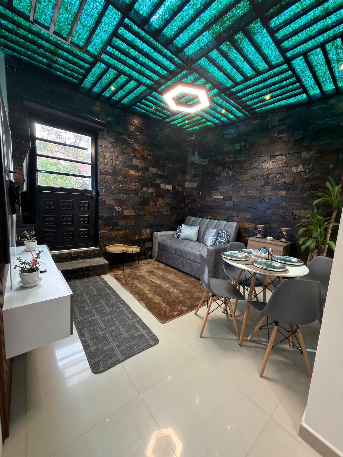 Green Mamba is a 100 m² (1,076 ft²) LUXURY apartment in Chicó, Bogotá’s safest, quietest, and most exclusive area. Just 5 minutes from Zona T and Parque 93, the city’s top dining and nightlife spots. Enjoy a private terrace with heated jacuzzi, BBQ, firepit, lounge area, and a dedicated work studio. Inside, find luxury finishes, a 75" TV, fully equipped kitchen, washer/dryer, and total privacy. Perfect for relaxing, working, or enjoying an unforgettable stay.