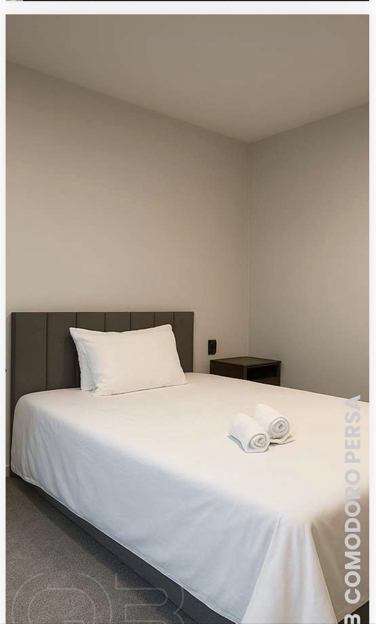 Q3 COMODORO PERSA • Bed • Hot inverter air conditioning and cold of 12,000 BTUs • 32-inch Wi-FiTV • Hygiene kit for overnight stays and daily rates • Coffee available for overnight and daily • Shower with three temperature modes • Blankets and towels • Dining table • Space for extra bed • Trio Way system in the bedroom (no need to get up to turn off the light) • Mobile cabinet with clothes rack TABLE R$140.00 R$200.00 Single has 25% discount on any room. Q3 hoteldomcarlos