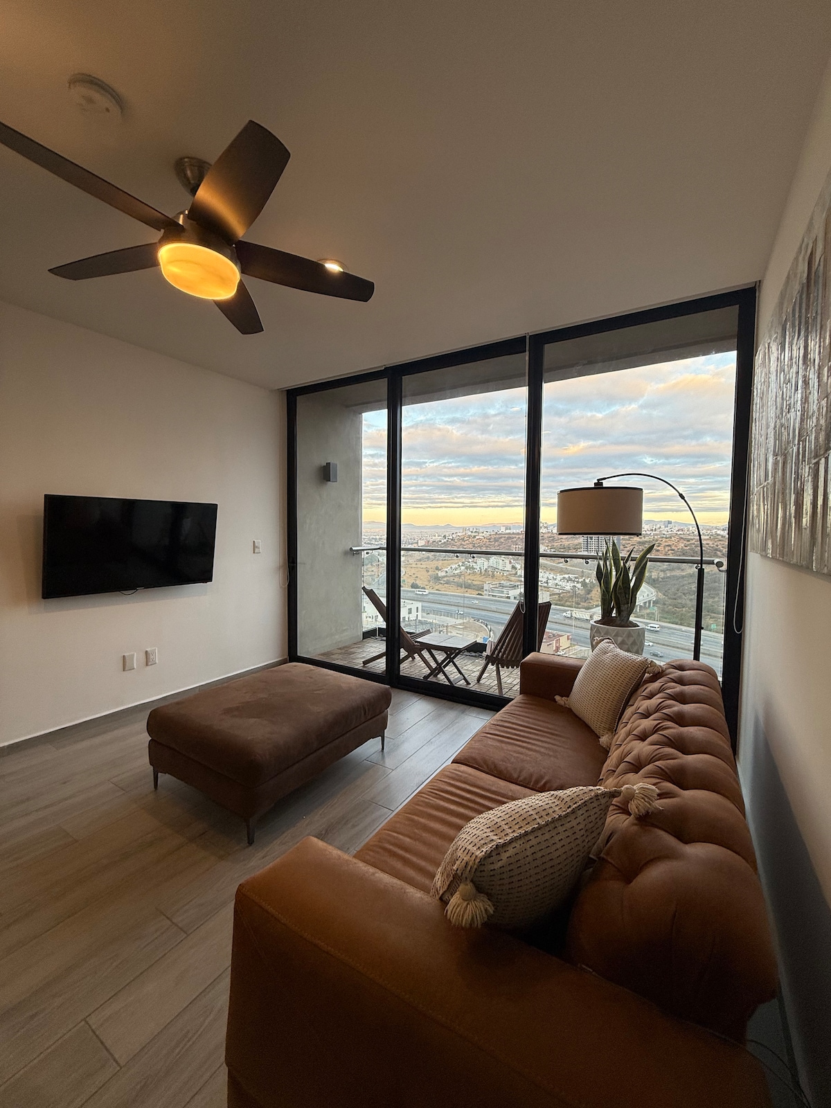 "Este espacioso departamento de doble altura ofrece una vista espectacular. Desde sus ventanas, podrás contemplar el icónico Starbucks frente a ti, los impresionantes atardeceres sobre la ciudad de Querétaro y las carreteras que se entrelazan. Por las noches, disfruta de las luces que iluminan la ciudad, creando un escenario mágico. Una experiencia única para aquellos que buscan comodidad y vistas inigualables."