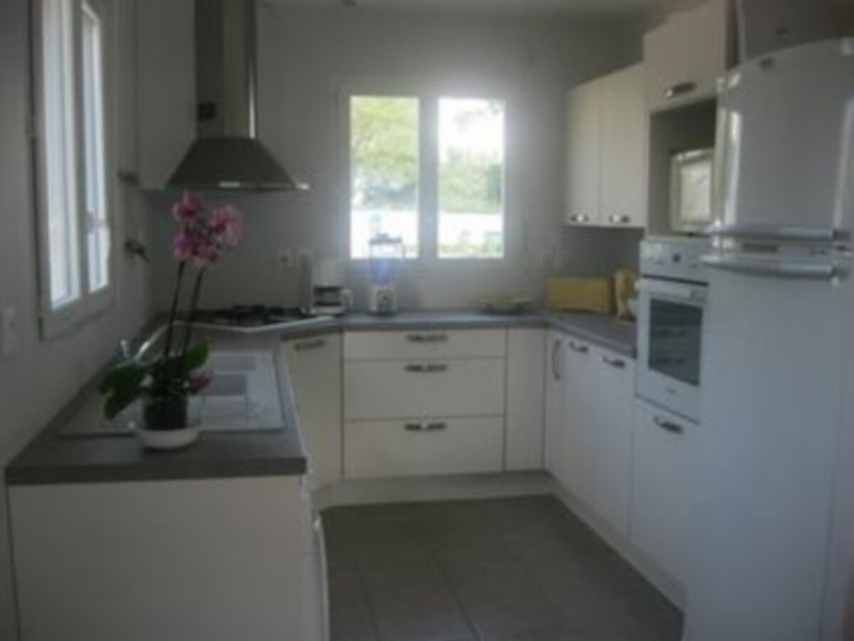 House in a cul-de-sac, 200 m from the beach and 800 m from the village. Large, very bright living room overlooking the terrace. Equipped kitchen: dishwasher, microwave, oven, stove. 2 bathrooms with shower, 2 powder rooms. 4 beautiful bedrooms. Barbecue, deckchair, garden furniture. Bikes available (2 adults, 2 children) Linens and towels not provided.