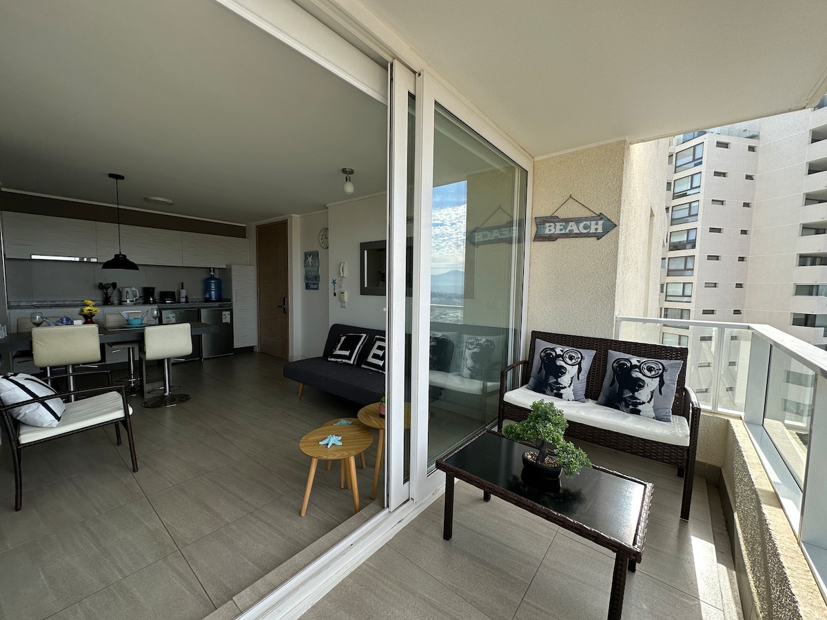 New apartment located in an exclusive neighborhood of Con con, Costa de Montemar. The apartment is furnished and fully equipped with internet access, a swimming pool, a gym, a sauna for rent, private parking, and a spectacular panoramic view. There is a supermarket and shops less than five minutes away and it is 100 meters from the Con Con dunes, ideal for two to three people, which is perfect for entertainment and rest.