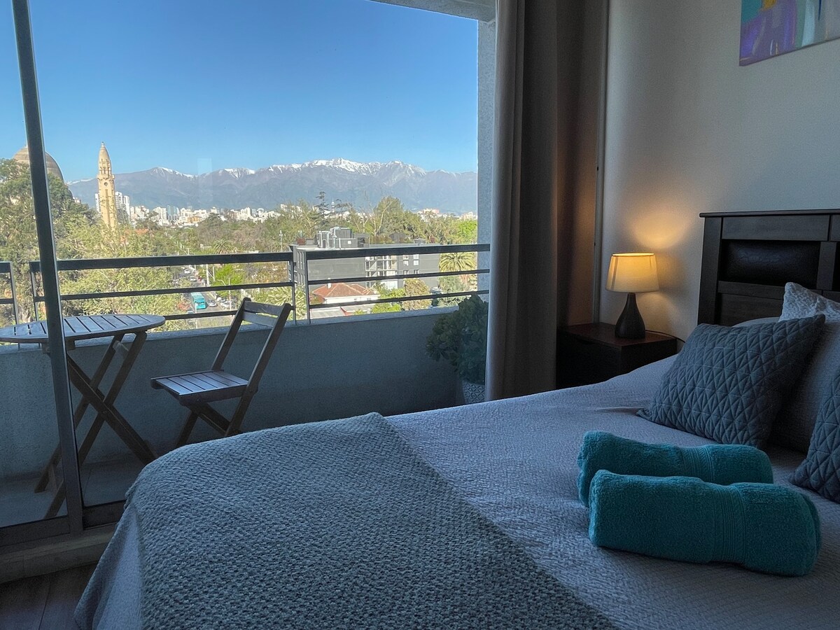 This apartment is ideal for relaxing and enjoying the city. It's centrally located, between the Santiago Centro and Providencia districts, one of the best locations in the city. It offers beautiful views of San Cristóbal Hill and the Sky Costanera. It's just a 3-minute walk from the metro and buses. Includes: Free Wi-Fi, a fully equipped kitchen, sheets and towels included, a large bed with a large Smart TV. Self-service entrance with a key, allowing you to arrive at any time.