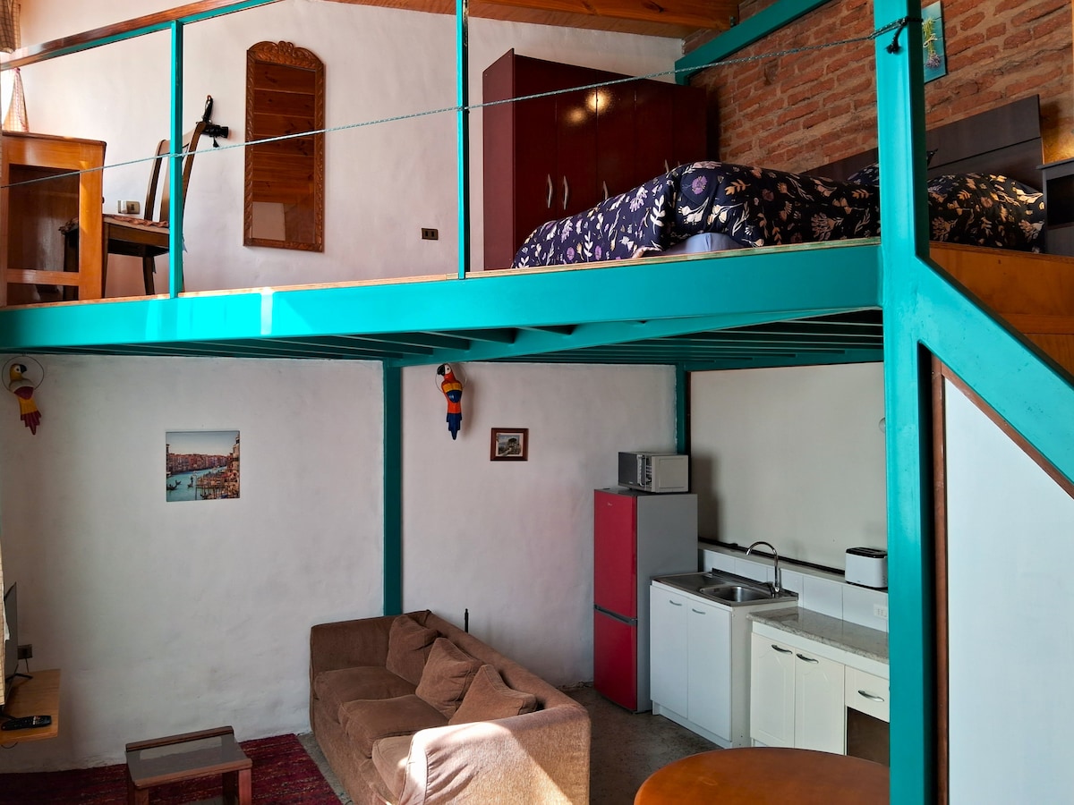 Loft ubicado en cerro Bellavista de Valparaíso, en pleno entorno del Museo Cielo Abierto, Iglesia Patrimonial, los mejores restaurantes de Valparaíso y el ascensor Espíritu Santo. Barrio patrimonial ideal para caminatas disfrutando de la arquitectura de Valparaíso. A 5 minutos caminando del centro de la ciudad. Cuenta con estacionamiento, vista al mar y cerros, totalmente equipado. Todo genera un ambiente cálido e ideal para hacer de nuestros huéspedes una experiencia inolvidable.