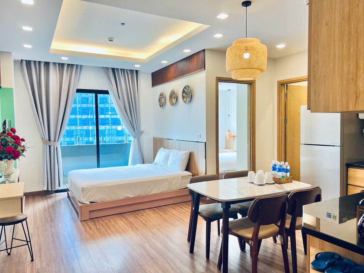 Hey ! Welcome to Quy Nhon And Scandinavian apartment If you believe beauty in simplicity, Scandinavian-style apartment is for you Studio apartment is in TMS residences and hotel beach. The studio has a large balcony with fantastic view over the ocean. From the same balcony, going down , you directly access the sandy beach. Very beautiful broad views of the sea framed by Ghenh Rang- Tien Sa