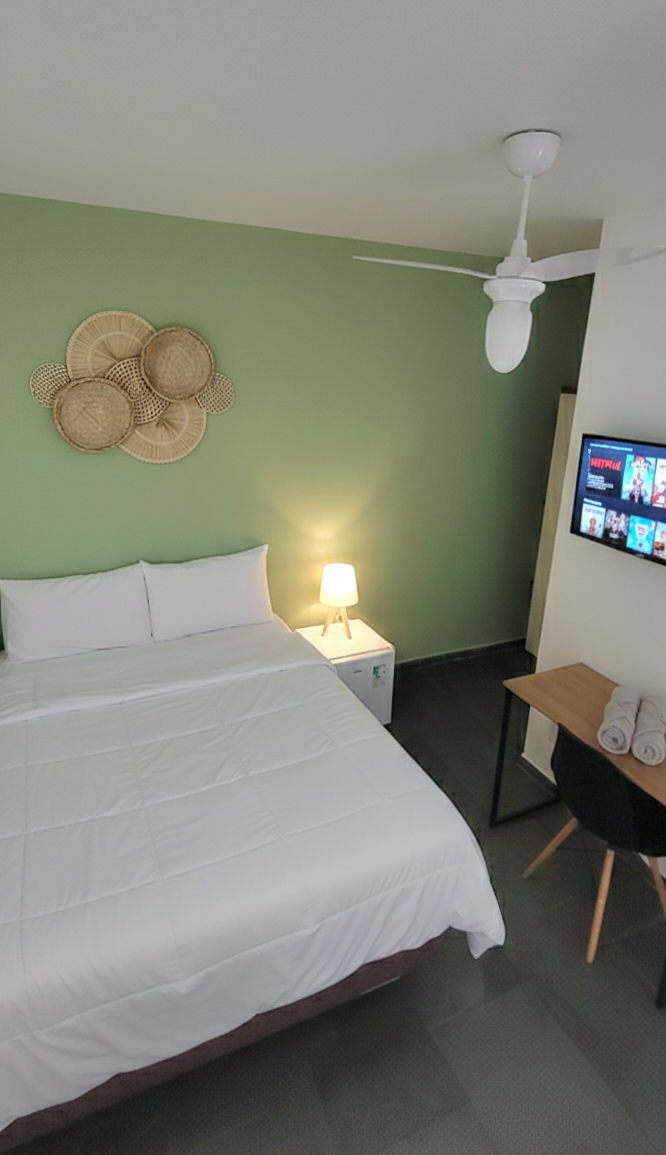 Furnished flat with: kitchen (basic utensils), gas cooktop stove, minibar, table with benches, queen box bed, 32" TV with Netflix and open channel, Wi-Fi, air-conditioning. I provide bed and bath linens, soap and toilet paper. Family atmosphere, shared backyard We accept pets at an additional cost, as long as they are always accompanied by their owner, do not climb on beds, up to 20 kg and a maximum of 2. External garage for cars and internal garage for motorcycles