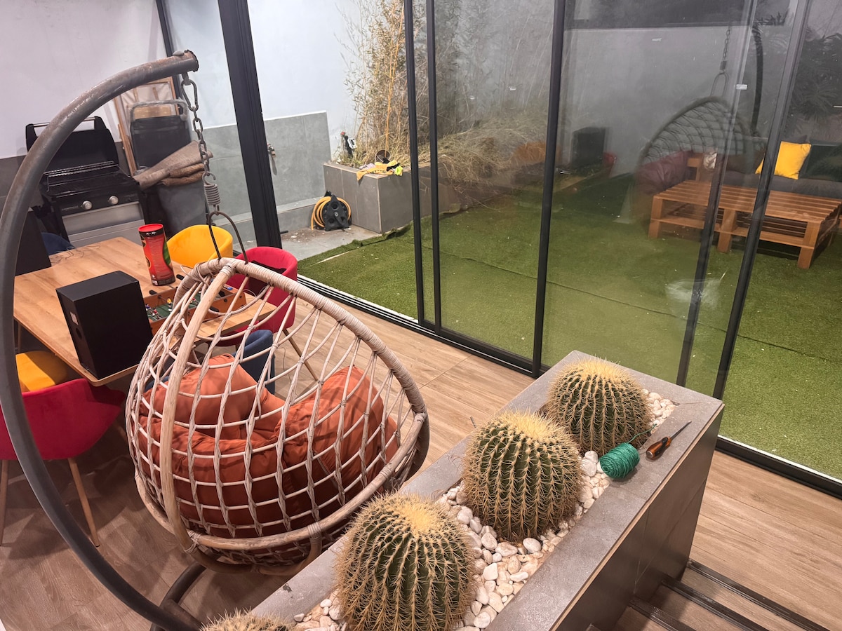 Ideally located in a dynamic and secure area, our apartment offers you all the necessary comfort with a large terrace with garden, a bedroom, a living room, a kitchen and a parking space. Find the Arribat Center shopping mall a 6-minute walk away, and the Hilton forest 10 minutes away, as well as all amenities (supermarket, McDonald's, shops 1 minute away). Lycée Descartes is also a 5-minute walk away. Tram is a 3-minute walk away.