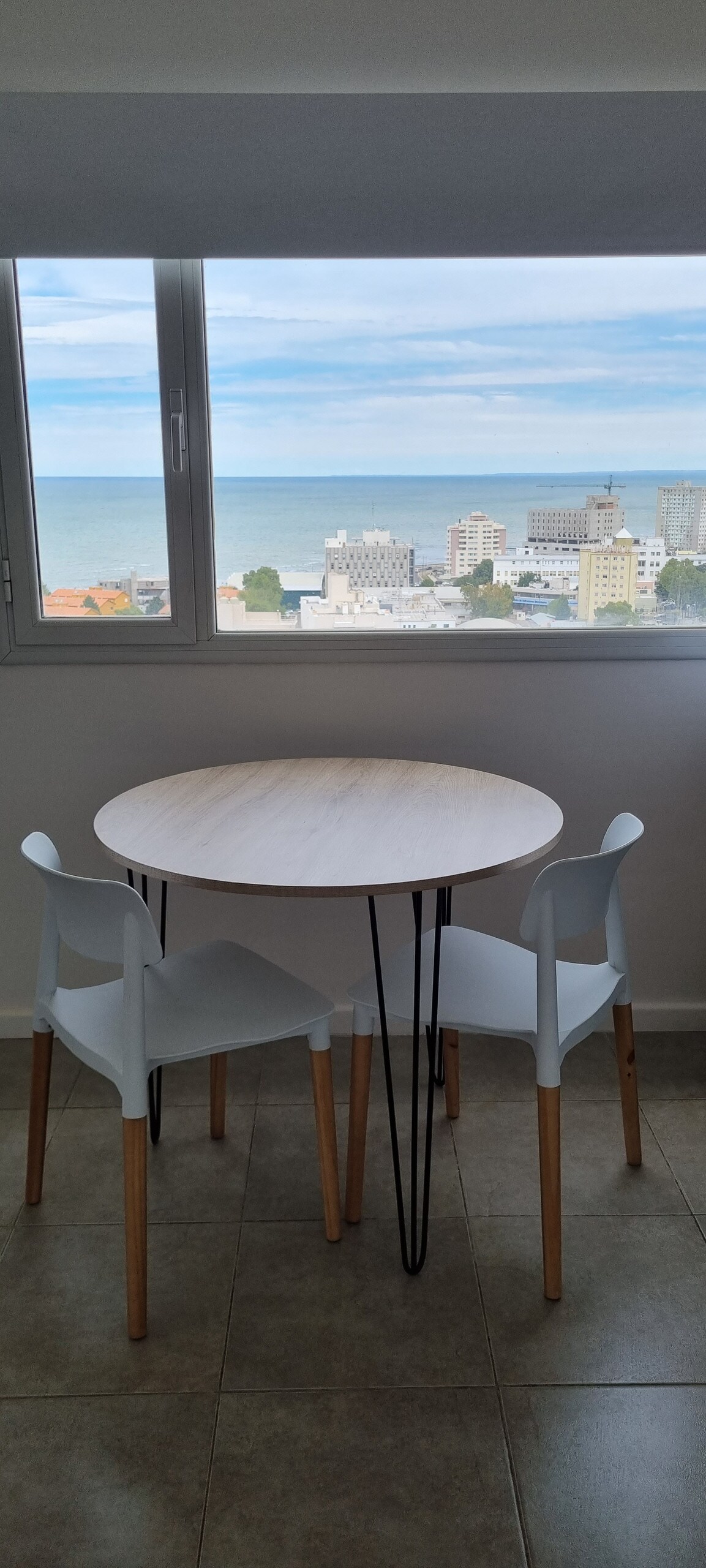 IMPORTANT: Check before booking as it may be booked by other means. Furnished apartment, 1 bedroom with double bed and closet, kitchen-dining room with small armchair and ottoman, table with four chairs, full bathroom. With private patio. Great location, safe, close to supermarkets, pharmacy, greengrocers, and service station. 5 blocks from the beach. Ideal for travelers/workers. The building does not have a garage.