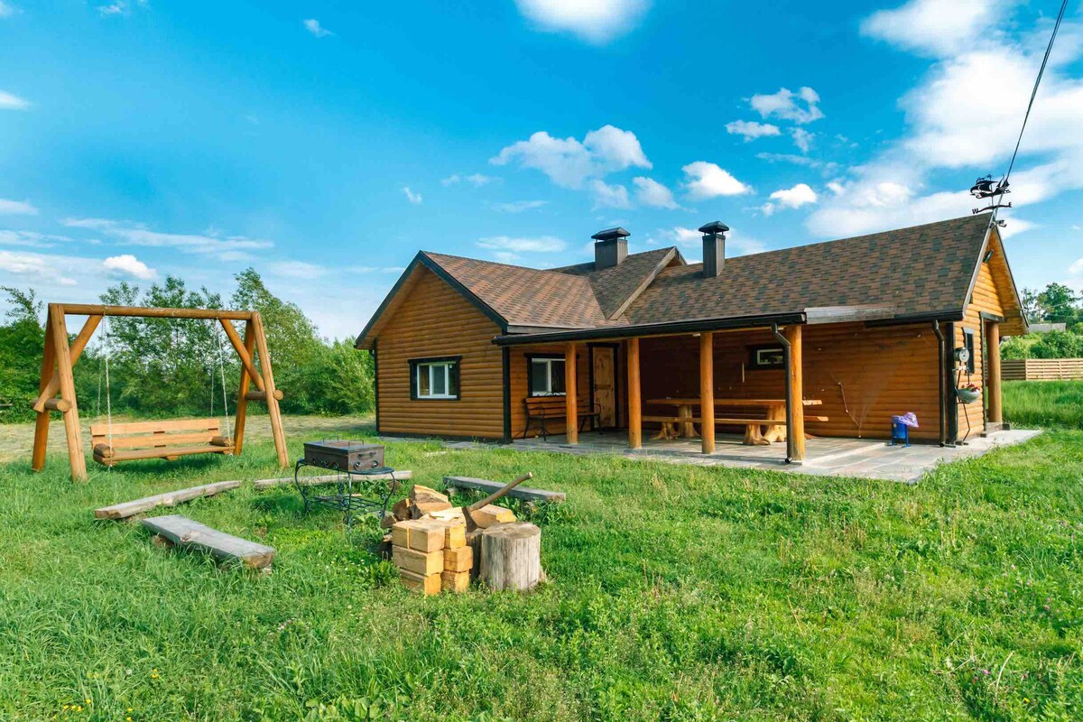 Деревяные дом сделаный с экологически чистого леса.С дома выходит терраса к озеру, где можно проводить время . Рядом с домом беседка с качелей и мангалом .Замечательный отдых - наедине с природой и тишиной. С большой любовью все сделано (дизайн + комфорт). Кроме того, продуман досуг. Можно играть в теннис, баскетбол, футбол, ловить рыбу, кататься на велосипедах по лесным дорожкам. Перезагрузка от городской суеты на сто процентов!