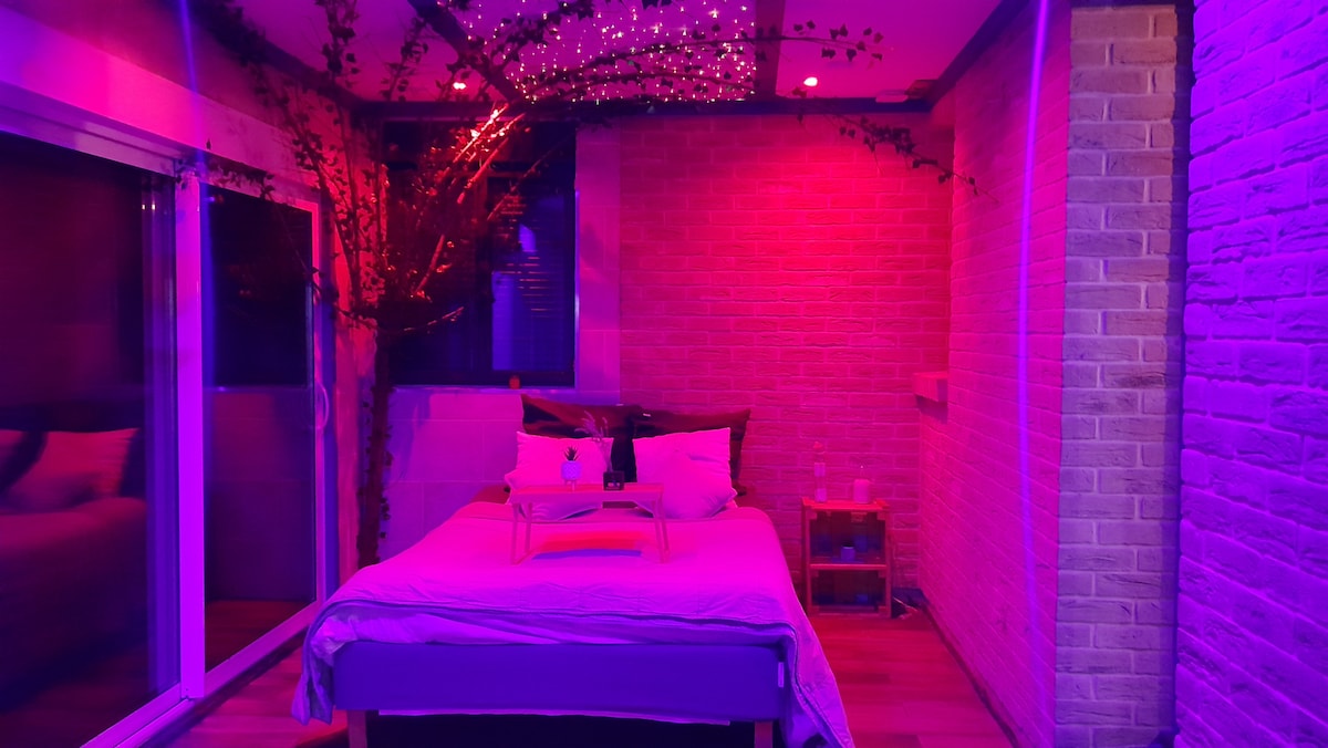 le "Spacidulé", maison avec jacuzzi intérieur à accès illimité , dans une ambiance pop art. Au rez de chaussée, vous trouverez un espace détente avec jacuzzi, un sejour avec télé connecté, une grande cuisine équipée, une salle de bain design. À l'étage une chambre avec télé connectée, lit queen size À l'extérieur, une cour avec salon de jardin. Vous pourrez, dans tous les espaces qu'offre cette maison, choisir votre ambiance lumineuse selon vos envies.