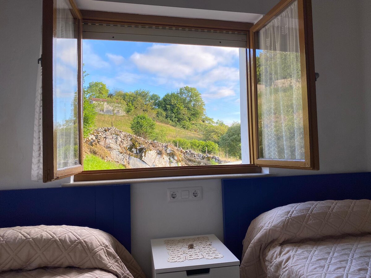 Enjoy this beautiful house with a garden, nestled in a private estate of two hectares, where you can enjoy the tranquility of the Asturian fields and mountains, and just a few minutes from the main points of interest of eastern Asturias. This eco-home's energy is 95% solar, and it's integrated into a natural environment that will make your stay a true haven of peace and tranquility. You can also enjoy your pets in freedom!