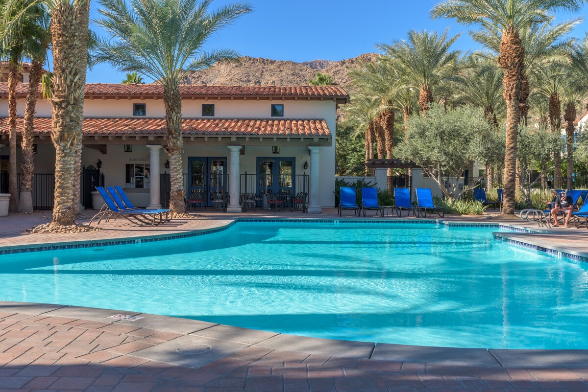 Villa Palmera, resort living in the heart of La Quinta. Indulge in the splendor of 12 pools, 11 spas, 19 fountains, a hammock garden and a host of outdoor fireplaces. Adjacent to the renowned Waldorf Astoria La Quinta Resort & Club our single level villa has beautiful views of the Santa Rosa Mountains and the sprawling gardens of Legacy Villas. This large 1bd/1ba villa features a king bed, fireplace, wet bar, walk-in shower, soaking tub and large private garden terrace.