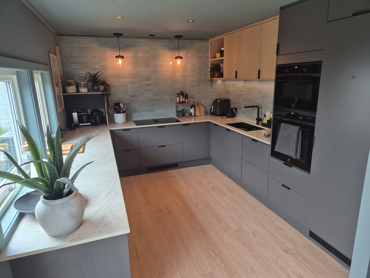 Spacious boathouse at Bru in Stavanger. Two floors, each floor has two bedrooms, kitchen, bathroom with shower and living room/family room. On the first floor there is a folding door that can be opened completely. Beds for 7 adults Parking space just outside the door. No access to boat. Winter insulated, heating cables downstairs, heat pump and wood stove. Beds: 2 beds of 120 cm, 1 x 90 cm bed, bunk bed (120 cm + 75 cm), double bed/2 x 90 cm beds put together. Sprinkler bed in one room downstairs. No partying, quiet at 11 pm. Host lives nearby.