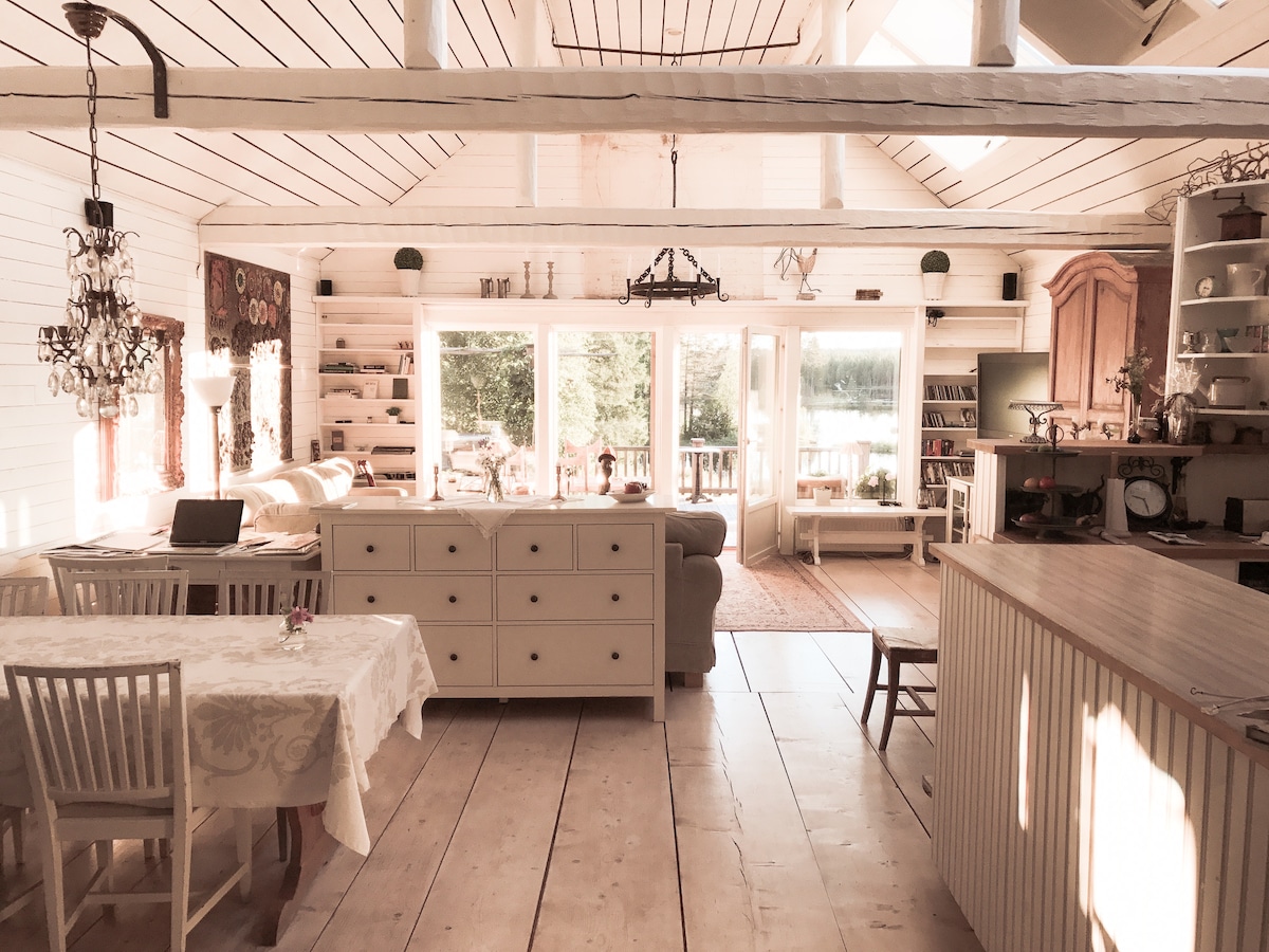 Different fairy-tale house with open space, fantastic porch with lake view towards the golden evening sun, fantasy-historically decorated bedroom area and very quiet and peaceful. Large private plot and meadow down to the water, 1 neighbor and otherwise forest around, but close down to the cultural-historical ironworks village and "river island"; headland with barbecue and swimming area. Short walking distance to 18-hole golf course. In the countryside, there are many sights and pristine sandy beaches. (Note: some things are still missing, such as some roof moldings.) Often games & jam in the village! :)