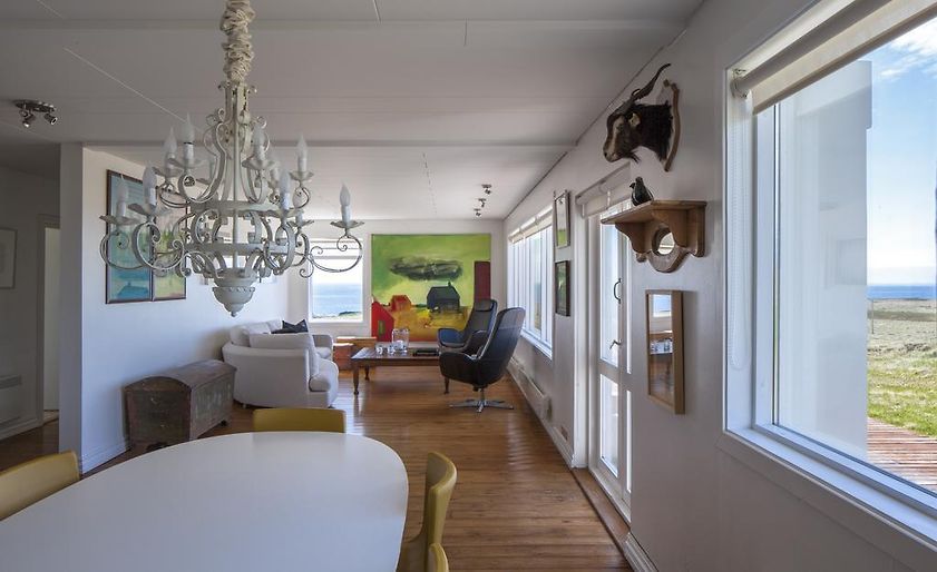 The house is 82 m2 with two bedrooms, located at a traditional Icelandic farm. The house is between the towns Stykkishólmur (20 km) and Grundarfjörður (20 km), where you can find all facilities you need. The house has superb view over mountains, sea and lava fields. This is a perfect location to discover Snæfellsnes peninsula. From here you can visit the Shark Museum in Bjarnarhöfn, go swimming in Stykkishólmur, go sailing around Breiðarfjörður or visit the national park.