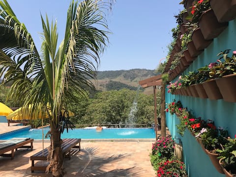 Casa Pietrafesa is a very beautiful and sophisticated refuge in the heart of nature, among the shades of green, the colorful flowers and the various species of birds... the aroma of the forest and the warmth of the sunset, the starry sky, beautiful sunny days and cool nights, located in Serrinha do Alambari - mountainous region of the city of Resende/RJ. Here, moments of peace, relaxation and also fun will certainly be enjoyed! Meditate, have a beautiful evening to the sound of a guitar, eat a pizza or barbecue!