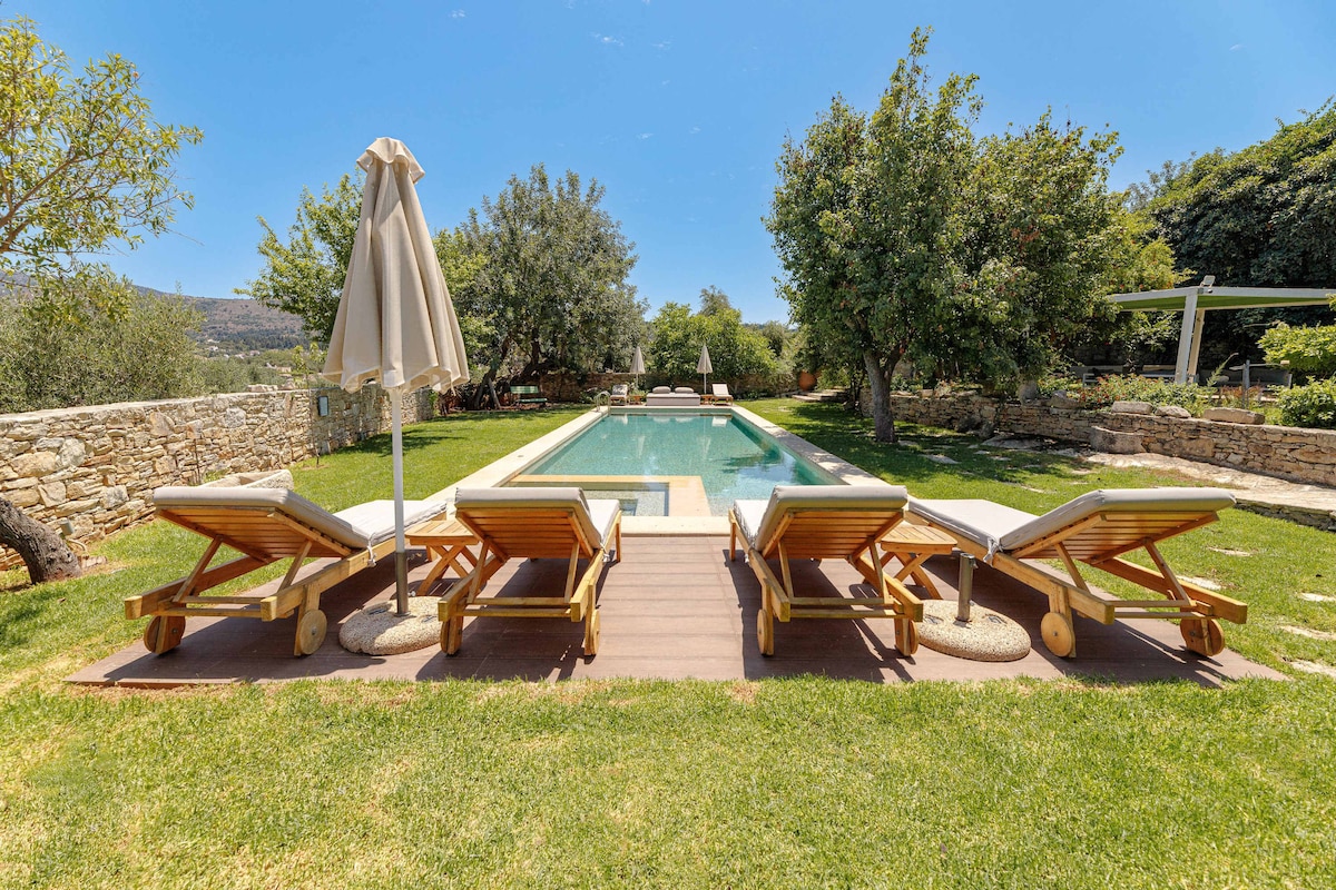 Discover tranquility and luxury at our exclusive villa, hidden amidst stunning landscapes. Crafted with attention, our serene haven features handcrafted wooden furniture, embodying elegance and authenticity. Outside, find a spacious pool area for sun-soaked seclusion and an expansive garden offering a colorful backdrop. Marvel at panoramic mountain views and explore the E4 hike path nearby. Seclusion meets convenience—15 minutes from Rethimno north, southern beaches and many attractions.