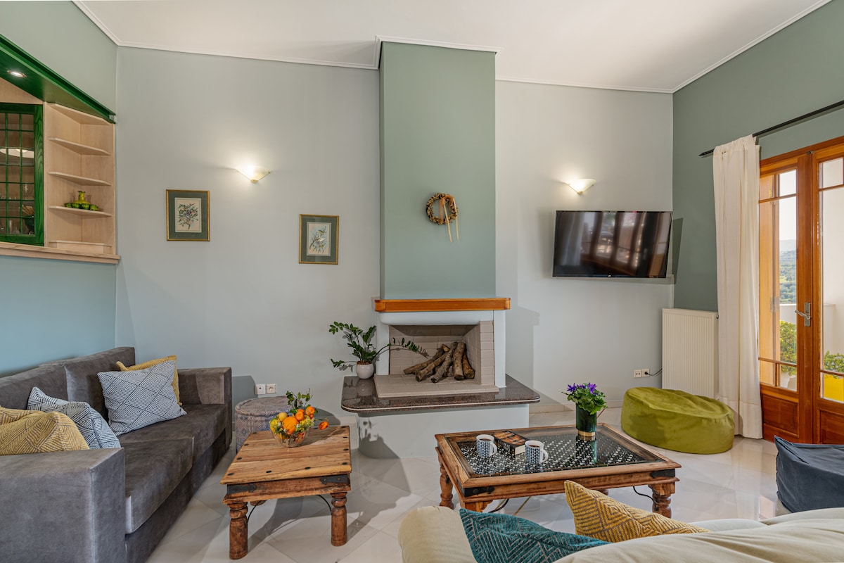 The villa enjoys a unique rural location. Set on a spacious private plot, fully enclosed by a stone wall and metal fencing. The beautiful rural setting provides the perfect atmosphere! A small pebble beach can be reached after a short walk through a wild stony pathway. Only in 5-8' driving you are in all the amenities! In 2026 there will be two more villas in the area but without obstructing the marvelous rural views. Around April new photos of the area will be available to be uploaded.