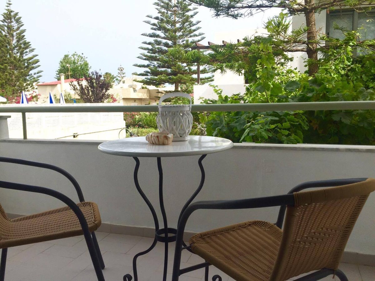 It is an apartment nice decorated in island style, blue and white, The blue color of the sea and the white foam of the waves(the different decorations in each room, make them unique and give you the sense of escape) with a kitchenette, WC, balcony or patio that you have sea view! The complex is between two beaches: the calm beach of Lygaria and the cosmopolitan Agia Pelagia beach We are 16 min about by car from Kazantzakis airport and 18 min from Heraklio port(Santorini, Pereus arrival-depart)!!