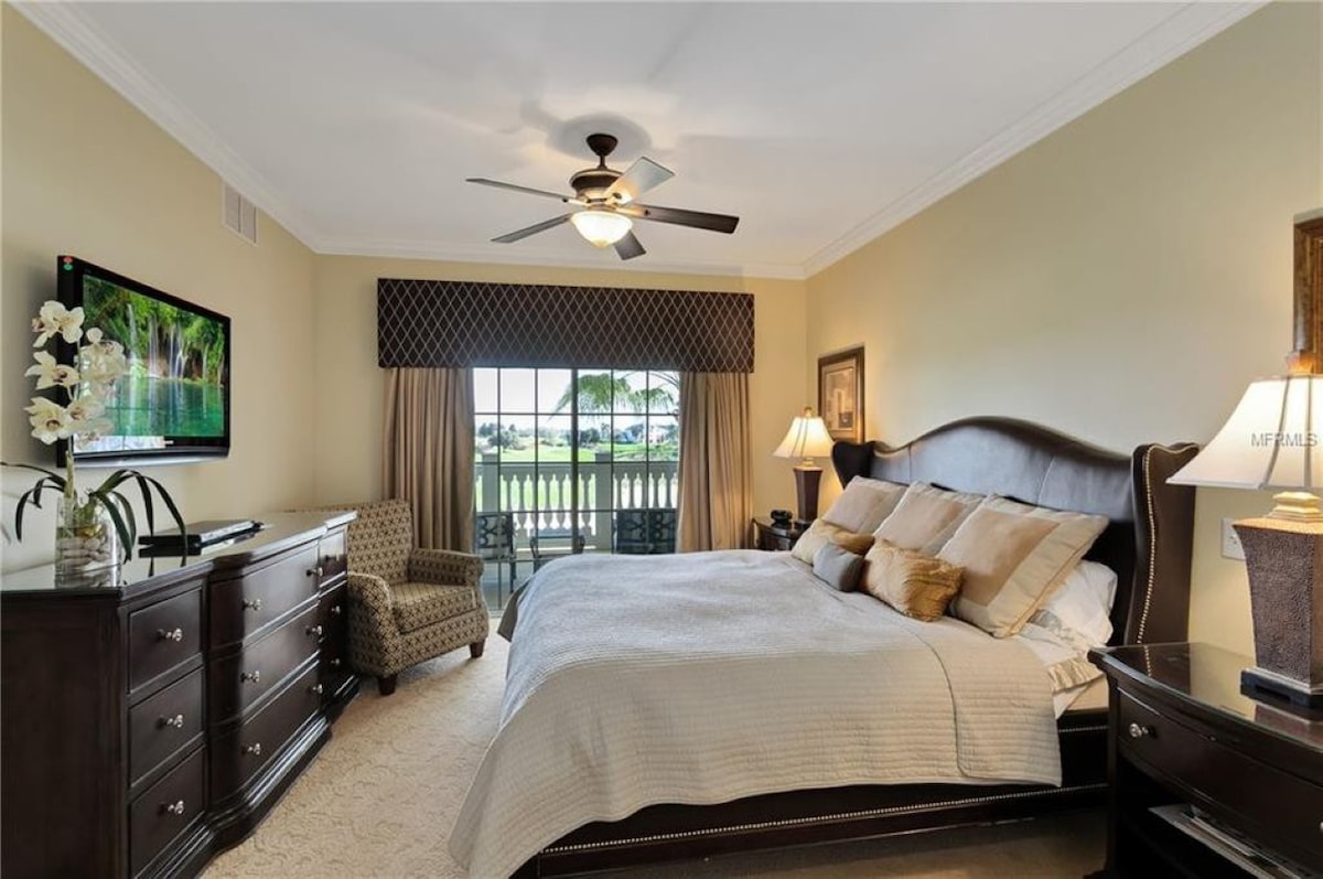 Welcome to our Home and Happy Place Our 3rd Level Condo is very spacious and comfortable with its High Ceilings and large open floor plan. It has a Full Gourmet Kitchen with Stainless Steel Appliances and amenities, 3 Bedrooms with 3 each private en-suite bathrooms and walk-in showers and plenty of room for guests. Master Bathroom has a Tub for your soaking pleasure! We are on the Tom Watson Independence Golf Course and have a direct view over the golf course. Only 6 miles from Disney world.