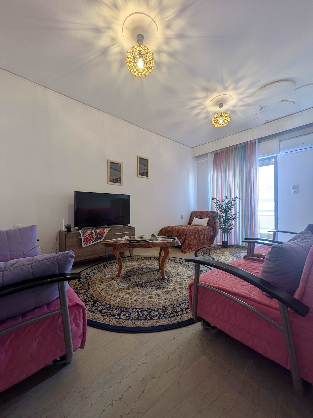 Cozy 2-bedroom apartment near Alexandroupoli city center. Each bedroom has a double bed, and one also includes a single bed. The living room offers 2 sofa beds—perfect for extra guests. Enjoy a fully equipped kitchen, clean bathroom, balcony, air conditioning, heating, and a washing machine. Located in a quiet and safe neighborhood, just minutes from shops, cafés, and public transport. Ideal for families, groups, or business travelers.