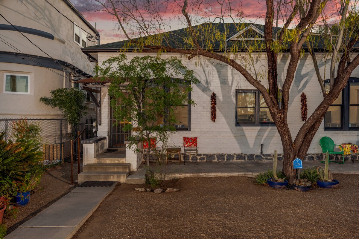 Come enjoy a stay at this stylish historic Adobe in the heart of downtown Tucson. The location is so advantageous to all of what Tucson’s downtown area has to offer: coffee shops, breakfast joints, restaurants, bars, music venues, art, etc. The unit is one half of a duplex which was built sometime around 1905. The original shotgun apartment has been beautifully revitalized to show off its colonial charm with acacia wood floors, stained glass art and Tiffany lamps throughout.