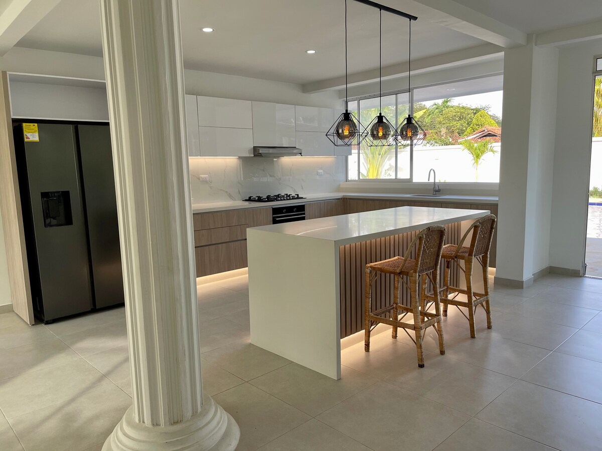 A modern house for rest, equipped with everything you need for days, weeks or months of rest and to get out of the routine, board games, wifi throughout the house, cable TV, safe. It has unparalleled private wet areas, swimming pool, jacuzzi, wet bar, waterfall and indirect jets, BBQ, parking lot with sun protection for 3 vehicles, four bedrooms with air conditioning, TV room, washing machine, water heater. WE DO NOT ACCEPT PETS OF ANY SIZE, BREED OR SPECIES.