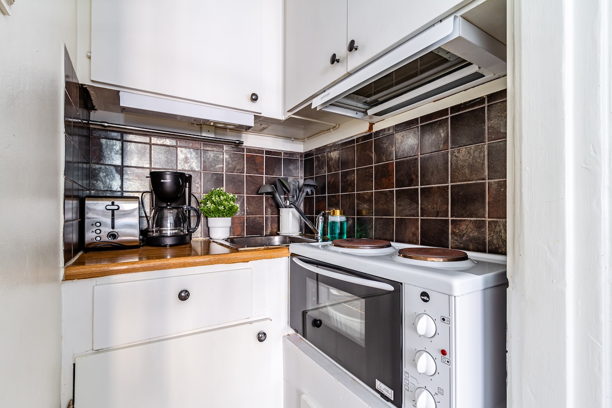 This charming 34 sqm studio is located between the Old Town and the vibrant district of Södermalm. The apartment offers free Wi-Fi, a flat-screen TV, and a kitchenette. You’ll be just a minute away from restaurants, shops, and public transport. Situated in a building dating back to the 1650s, the apartment features high ceilings, beautiful stucco details, and, due to the historic construction, somewhat thin walls. It also includes a dining table with chairs and a modern bathroom with a shower.