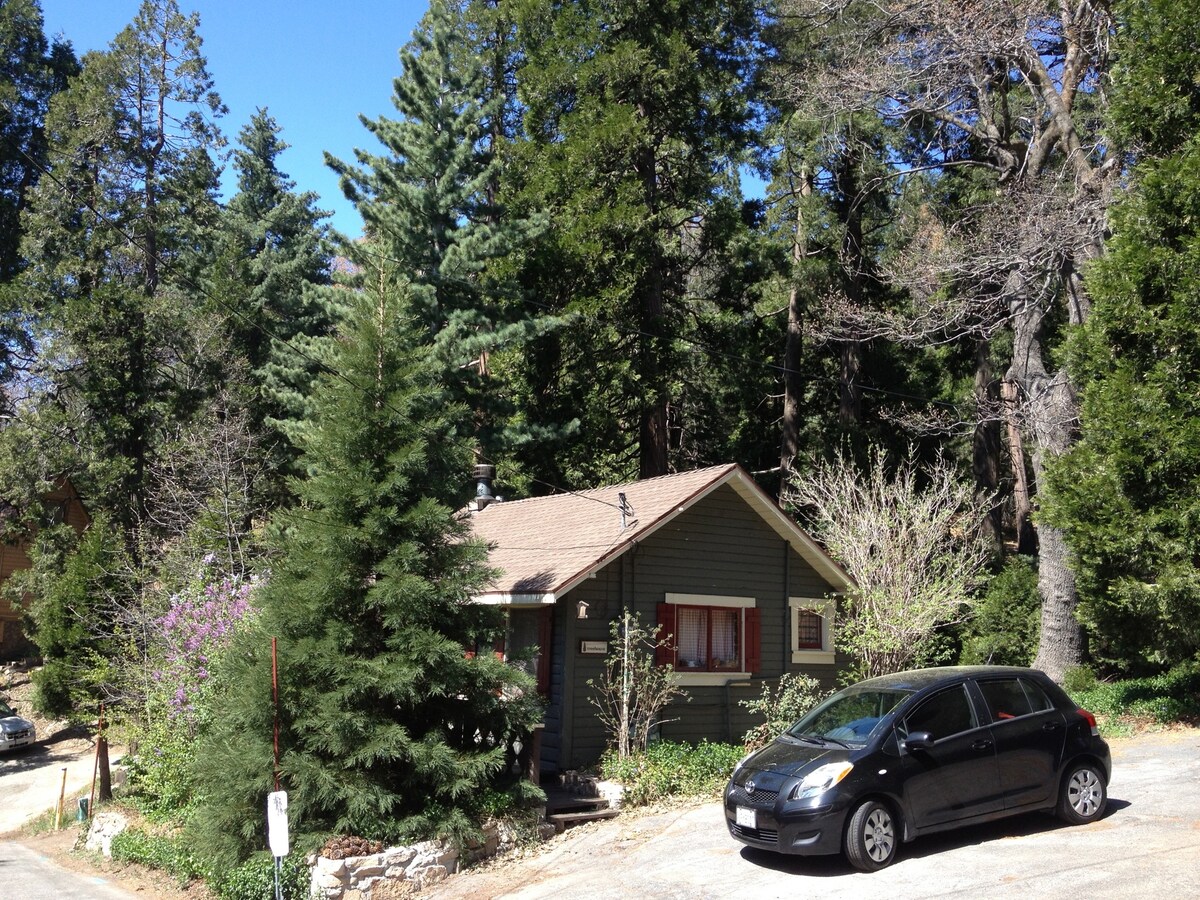 ~ Rustic 750 Sq. Ft cabin. Dog Friendly, fully fenced, beautiful lighting throughout. 8 min to Lake Arrowhead & Lake Gregory ~ Attending a Wedding at the Pine Rose? We are next door! ~ Walking distance to a small market and the best restaurant on the mountain (The Antler Grill) ~ Romantic wood burning fireplace. Central heat & A/C, 65" TV, cable & internet ~ Backyard gas BBQ , 3 person Jacuzzi (2 seat, 1 lounge) hammock, horseshoes & outdoor shower (Indoor as well) ~ Easy parking