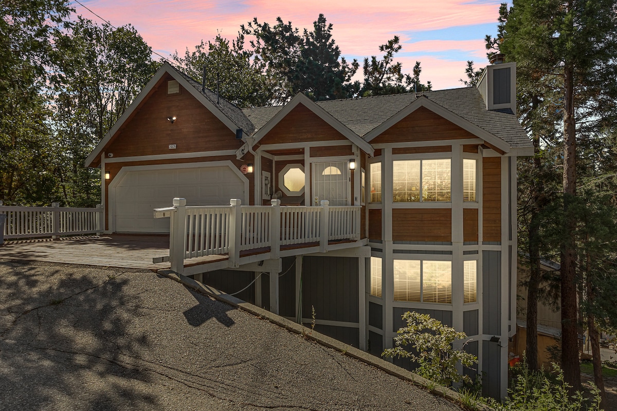 Unwind in this cozy, modern Lake Arrowhead cabin with treetop views and a peaceful setting. Perfect for a relaxing retreat, this stylish getaway features all-new appliances, a fully stocked kitchen, comfy queen beds with pillow-top mattresses, luxury linens, down-alternative pillows, and plush blankets. Stay cozy with a Nest thermostat. Nestled in a quiet location with gorgeous views yet close to Lake Arrowhead Village, hiking trails, and local attractions—your perfect mountain escape awaits.