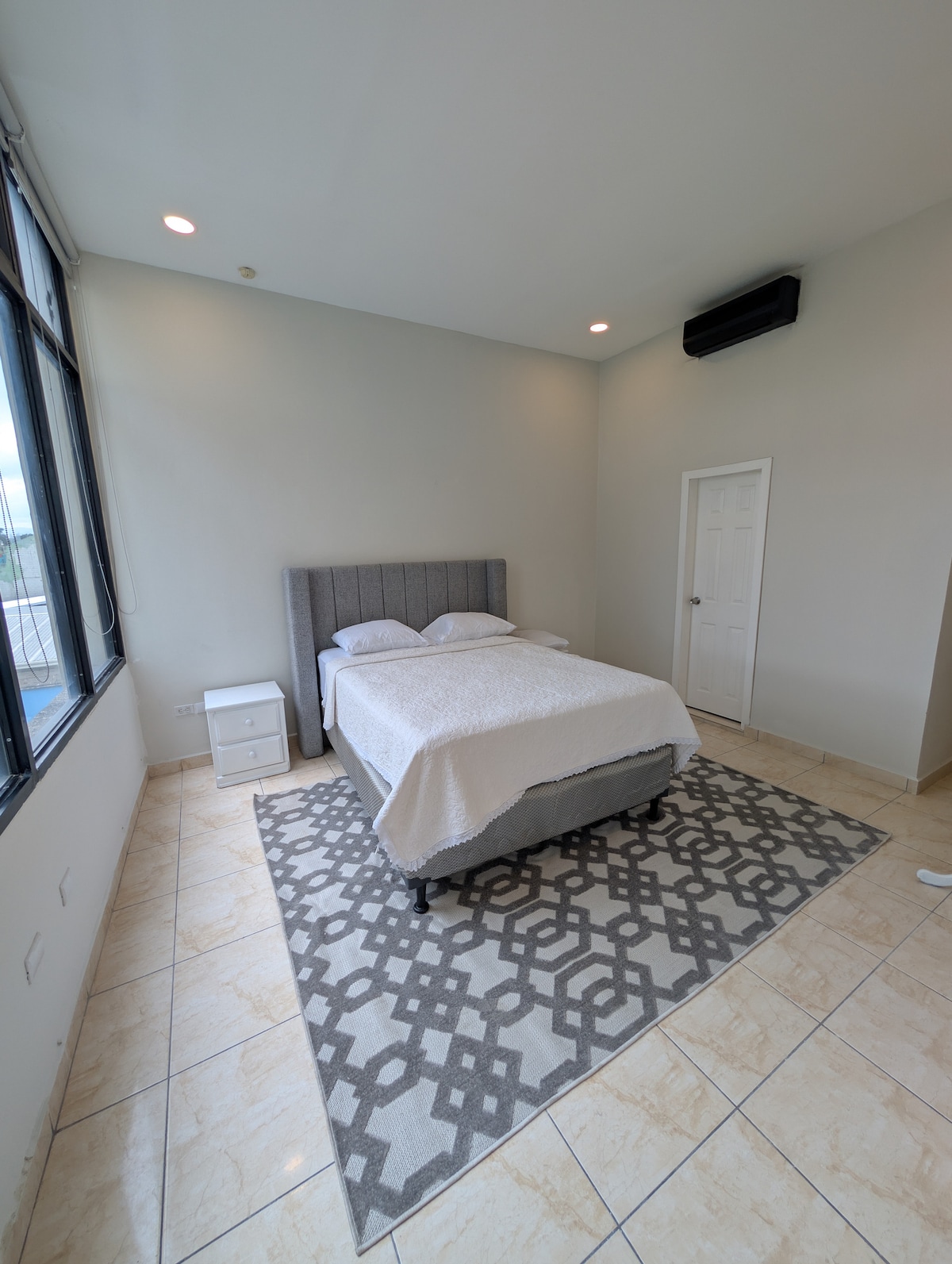 Disfruta de una experiencia con estilo en este alojamiento céntrico y acondicionado para una estadía de descanso y escritorio con vista panorámica de Tegucigalpa, baño privado completo. Consta con implementos de cocina, estufa, A/C, refrigeradora, plancha, TV con programación Streaming MAX, Internet de alta velocidad, lavadora dentro del apartamento, para que puedas ahorrar mas. Consta con areas comunes: gimnasio y kioskos para reuniones sociales cuyo uso se reserva previa programación.