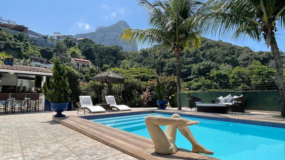 CABANNAS DEL MAR Delight yourself with this beautiful sapê house, perfect for unforgettable moments. With four comfortable bedrooms, large living room, equipped kitchen, gourmet area with barbecue and a refreshing pool, it offers all the comfort in a unique setting. Located on the edge of the JOÅ canal and at the foot of Pedra da Gávea, the house combines rustic charm, natural elegance and a spectacular view. An ideal getaway for those seeking tranquility. This amount is to accommodate 16 guests only