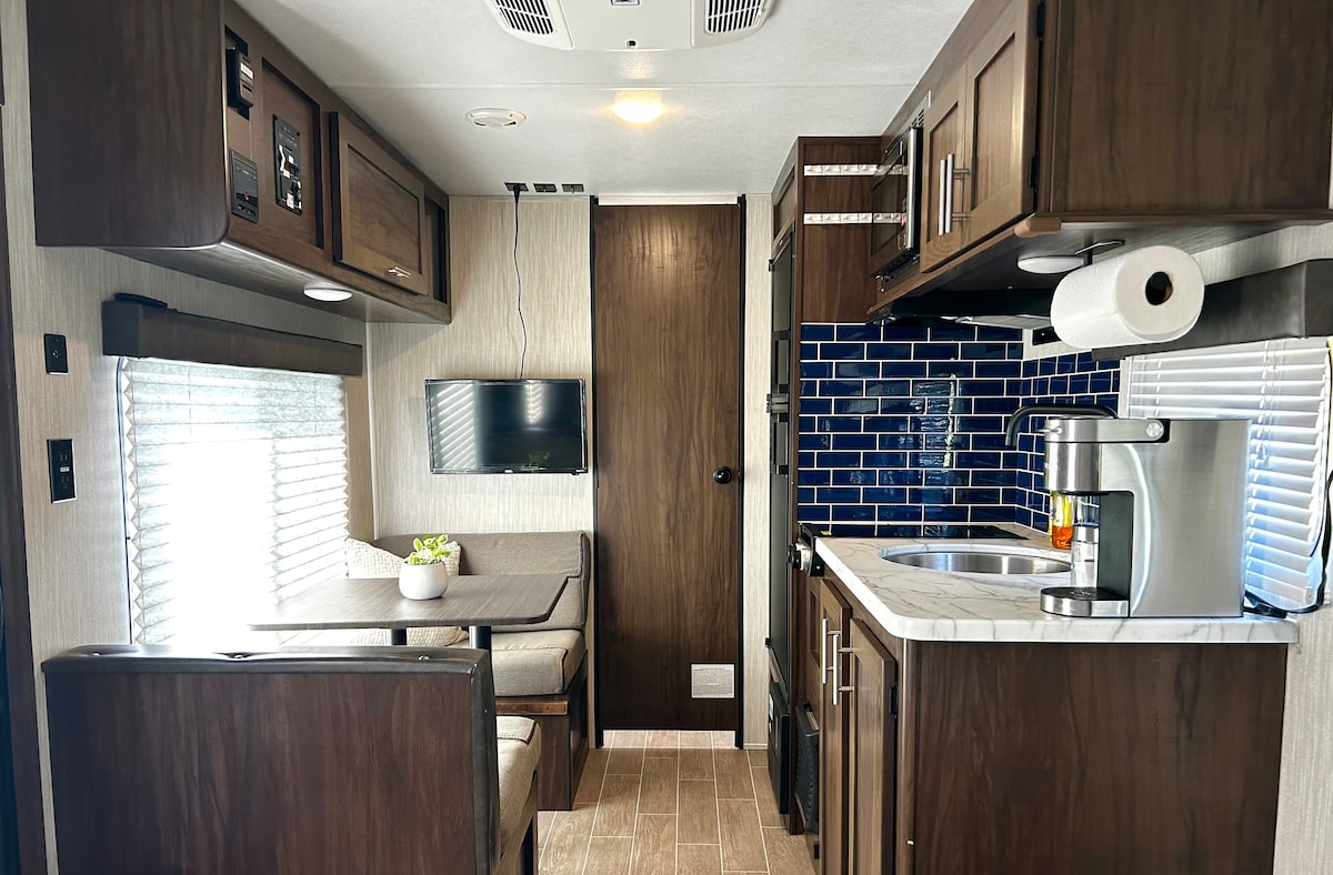 Welcome to La Gozadera RV, your perfect retreat near the stunning beaches of Salinas, Puerto Rico. This delightful camper is designed to comfortably accommodate guests, offering a cozy bedroom and bathroom, ideal for a romantic escape or a small family vacation.