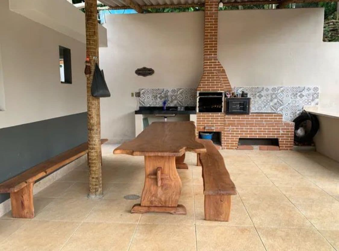 Casa com 4 quartos sendo 1 suíte + 1 banheiro social, sala c sofá cama TV a cabo, WIFI, cozinha ampla c mesa de madeira c 6 cadeiras , áreas externa c + 2 mesas de madeira . piscina + 2 banheiros externo , churrasqueira, fogão a lenha c forno + 1 fogão de 2 bocas industrial. Uma ampla área Kids com escorregador, gangorra e balanço. 2 lagos c Jardim de inverno e lareira externa , raia de bocha e sinuca . uma pequena cachoeira c água corrente e mini Pomar.