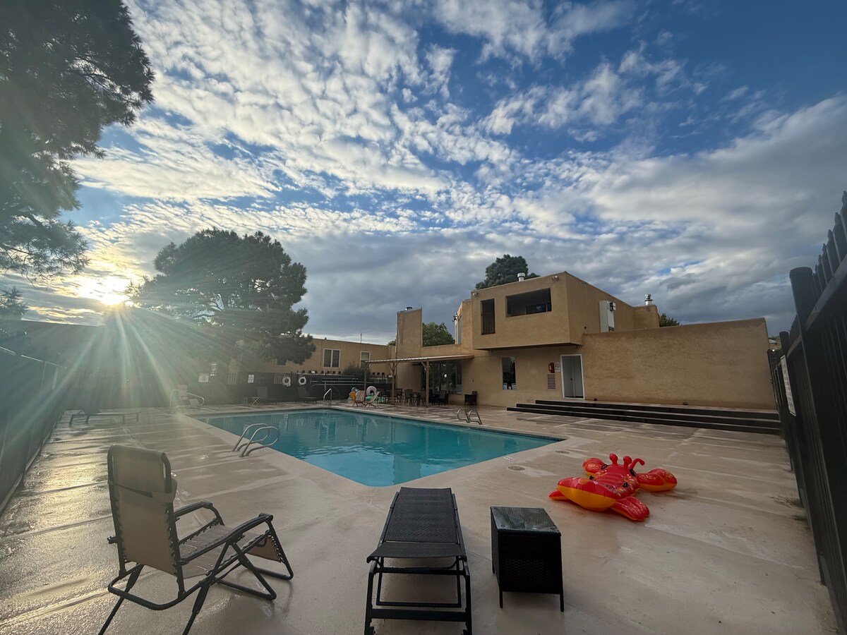 Affordable, resort-style living in a private, professionally designed space with ensuite bathrooms. Unbeatable value in a unique, gated community with luxurious amenities - beautiful two tier pool, sauna, gym, volleyball court, outdoor grilling station and club house with office space. Conveniently located near all that Albuquerque has to offer! Minutes from the airport, downtown & oldtown, and many other local and national favorites. Perfect for short or long stays. All travelers welcome!