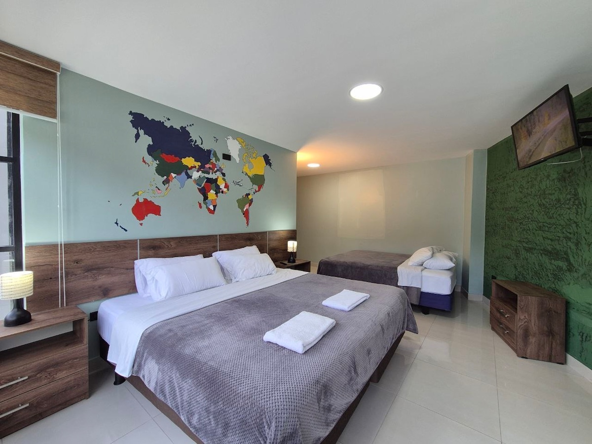 It has an elegant and renovated space, private and very comfortable, a suite with a privileged view of Riobamba Olympic Stadium, enjoys events, matches and multiple activities from your own balcony, located in the heart of the city close to everything, has all the amenities, a very quiet atmosphere at night and cozy, has living room, breakfast, kitchen, private bathroom, balcony, external dining room, work area and more.