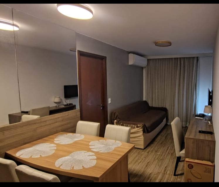 Modern and cozy flat, combining the comfort of a hotel with the freedom of a home. Ideal for both leisure and business travelers, the space features a suite with a queen-size bed, air conditioning, Wi-Fi, TV and minibar. The condominium offers excellent infrastructure: gym, swimming pool, sauna, Jacuzzi and restaurant with affordable prices. The location is privileged, just 100 meters from RioCentro, ensuring practicality and easy access to various attractions in Barra da Tijuca.