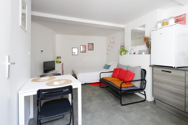 Modern and fully renovated studio, nestled in the heart of Riom's city center. Located on the ground floor, this welcoming space is just steps away from all essential shops, bars, and stores, all accessible within a 3-minute walk. The living area is equipped with a television, A/C and a dining table for four, creating a cozy and relaxed atmosphere and with a double bed 140x190, ensuring a restful night's sleep. The kitchen and bathroom, both fully equipped, will meet all your needs! Parking:yes!