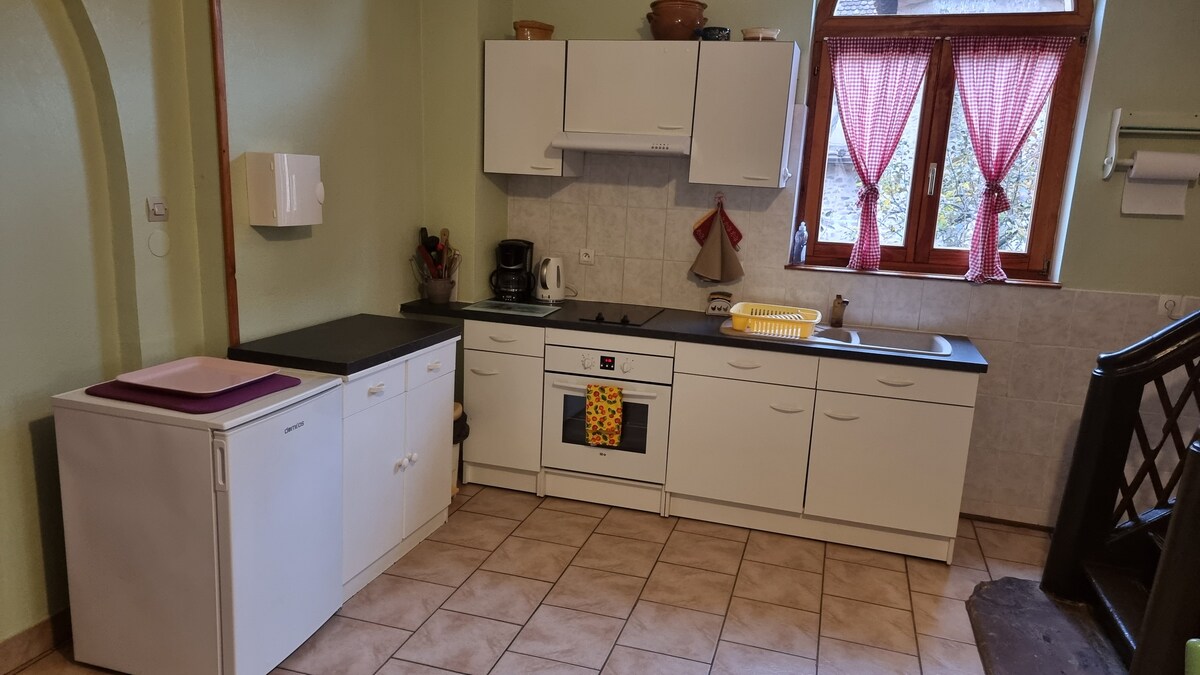Fully renovated apartment in a detached house in Kaysersberg, voted the most beautiful village in France. Fully equipped kitchen (Nespresso machine) Living room with leather corner sofa with chaise longue, 1 bedroom (bed: width 160). Spacious bathroom with walk-in shower and toilet. Very quiet. Private entrance, Free parking in front of the house. Outdoor area with garden furniture and BBQ, fenced. Linens, towels, toilet paper, soap and shower gel are provided.
