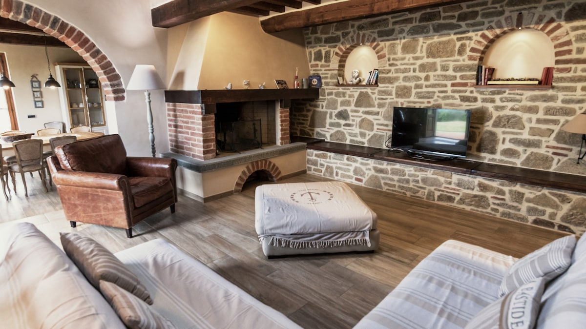In 2023 my son Guglielmo and I decided to restore the old oratory of a church from the 1600s by creating a two floor apartment: upstairs we have 2 bedrooms equipped with AC and 2 en-suite bathrooms with shower; downstairs a spacious living room with stereo Available a table outside with great view and a nice garden 50 mt away where to have a private wine tasting or barbecue for all the guests of our 4 apartments, after 7pm if booked large in advance Large free parking area 100 mt away