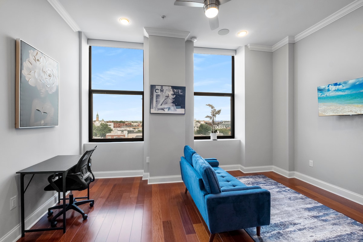 Welcome to Hope House! We are set up as a 1 or 2 bedroom apartment, depending on booking details. Our unit offers lots of light & is ground level so you don’t have to carry luggage up & down stairs. Custom window blinds open top down or bottom up to maintain privacy to your liking. There’s secure, gated entry to the building, an easy to use smartlock, fast WiFi, & a 60” HDTV equipped w/ FireStick to access all your favorite subscriptions. Proximity to Fishtown, NoLibs, & transit can't be beat!
