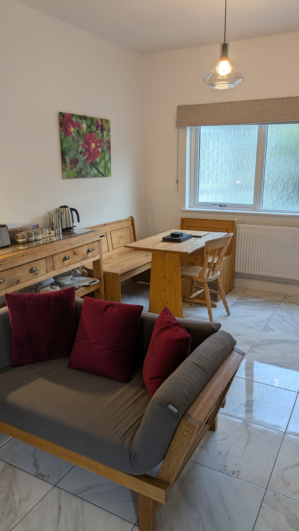 Townfoot Byre, Troutbeck is a beautiful bedroom suite in our 330 year old traditional Lakeland farmhouse. The house was built in 1691 and what is now Townfoot Byre would have originally housed animals. However, it has now been converted it into a charming and cosy bedroom suite with its own small kitchenette and bathroom. Spa, sauna, swimming pool and gym access at a local club is included, free with your stay. A 7Kw EV charger is available, if you're travelling in an electric vehicle.