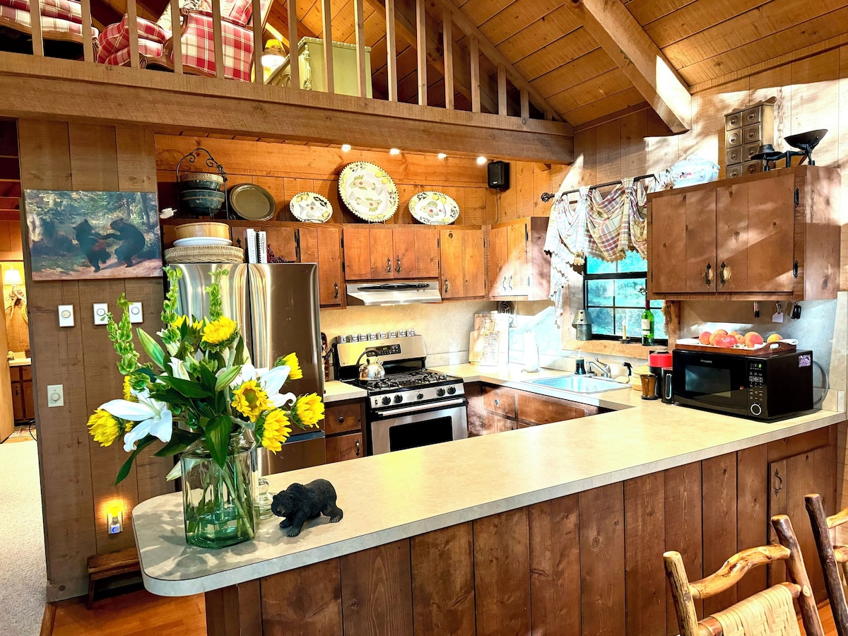 Enjoy a private home while exploring the western North Carolina beauty. For more, read on. Here's a review left by my most recent guests: Five stars. Mary went above and beyond to accommodate The cabin is adorable with lots of nice touches, and the outdoors areas are simply amazing. The closet kitchen is well supplied . We actually cooked all but two meals during our week-long stay. The bed is very comfortable. I highly recommend "The Bear's Den" for your stay in the Franklin, NC area.