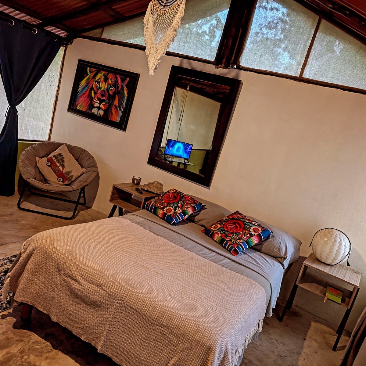 This villa is the most equipped. It has 1 bedroom, 1 bathroom, kitchen, living room, dining room, private Jacuzzi, garden, Bali bed, high-speed internet, and can sleep up to 4 people in 1 king-size bed and a double sofa bed. The stay includes premium breakfast for everyone that can be served in the palapa or can be brought to the comfort of your villa. Our experienced staff will support you in whatever you need to have a dream vacation.
