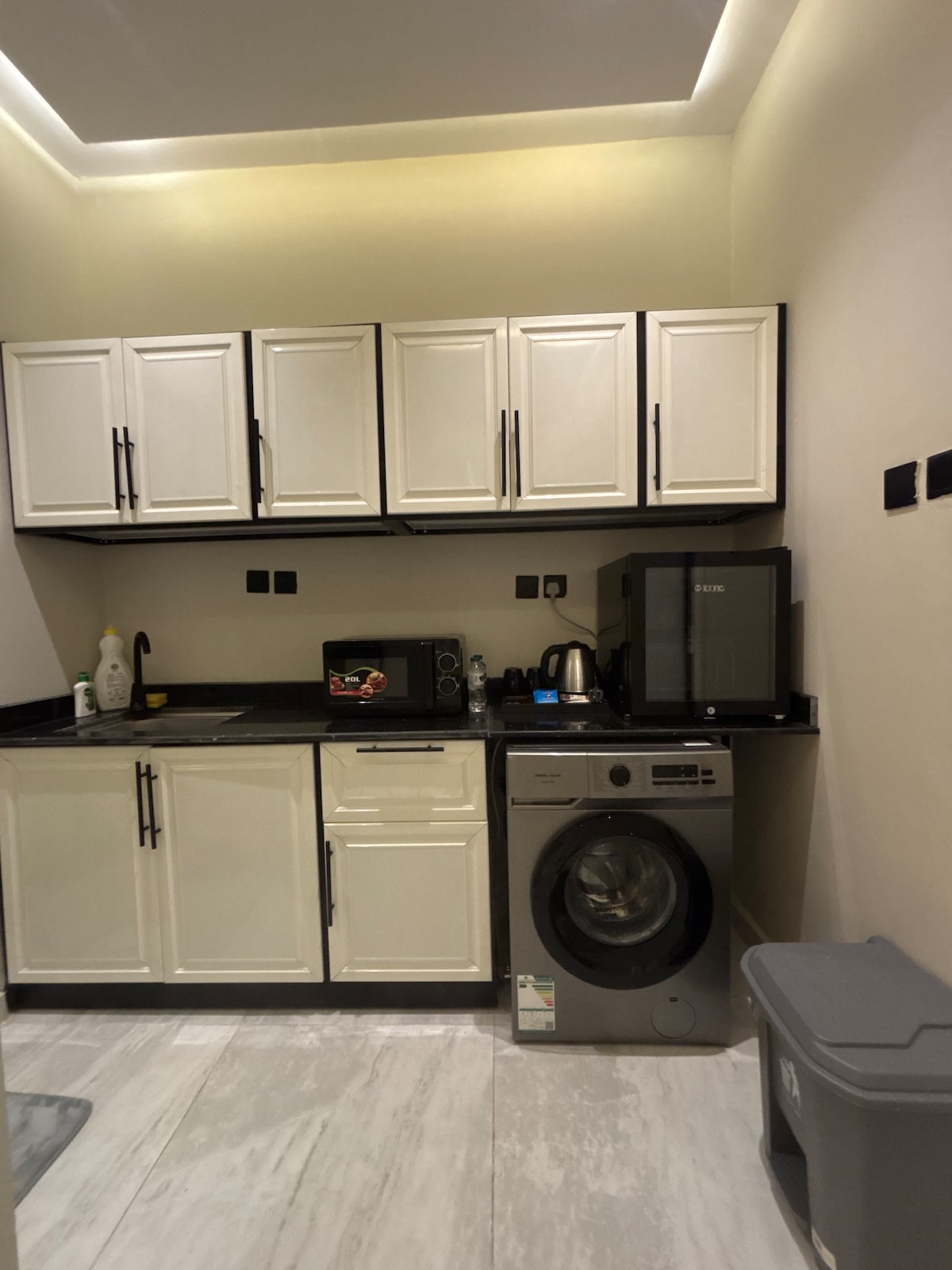 Modern 1BR in Hittin, one of Riyadh’s prime locations, minutes from Boulevard City and top cafes. Designed for comfort and ease with self check-in and a full smart system. Features a cozy living area, comfortable bedroom, 85” Smart TV, and an elegant electric fireplace for a relaxing atmosphere. Fully equipped kitchen with oven, microwave, electric stove, dishwasher, and washing machine. Clean, stylish, and ideal for couples, business travelers, and short or extended stays.