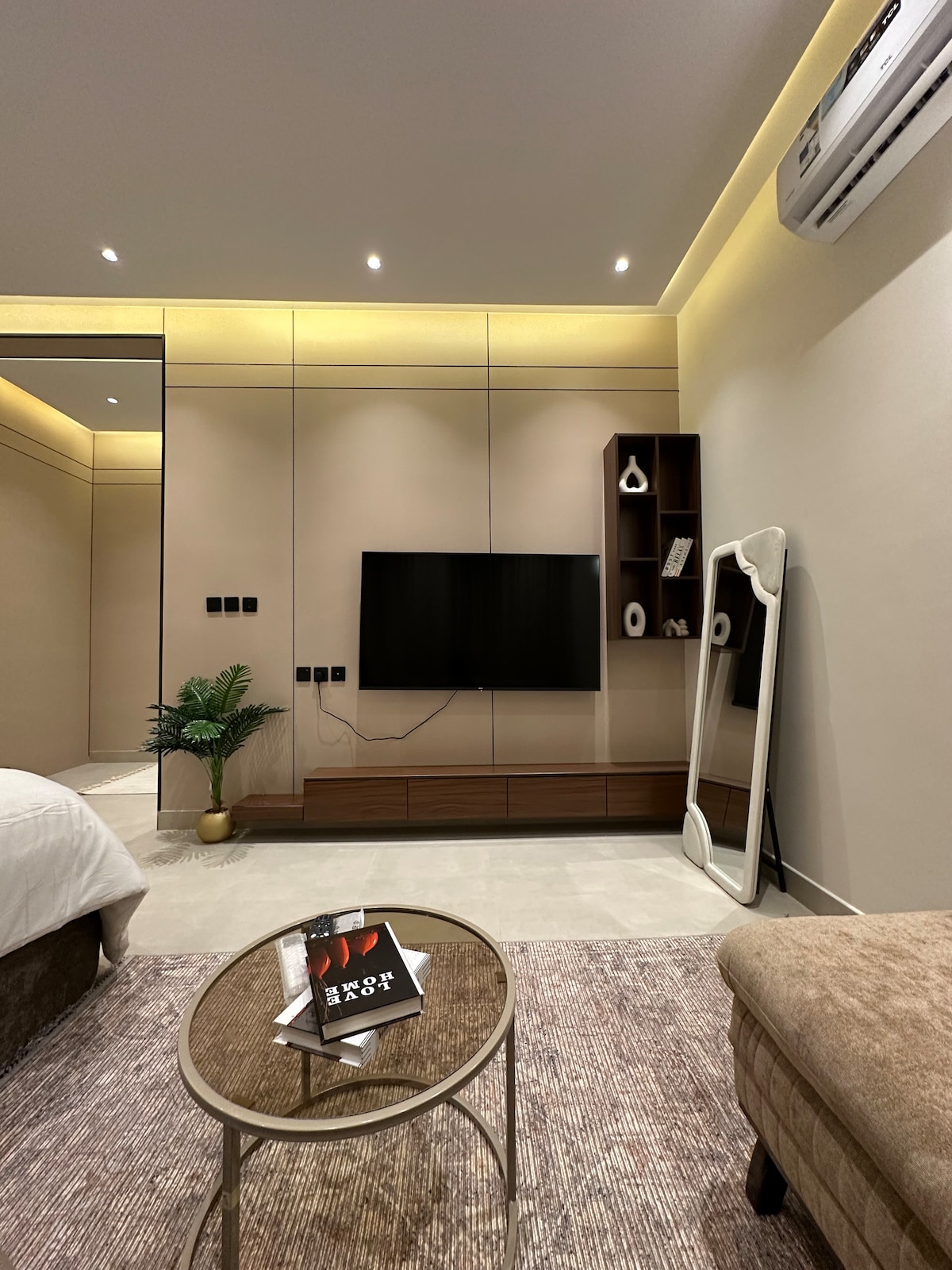 Welcome to our luxurious apartment that combines the luxury of hotels and the beauty of modern design, to provide you with an exceptional stay experience that exceeds expectations. The studio has a wonderful space and elegant design that combines comfort and luxury. It has a great location in the heart of the city, close to attractions and restaurants: 🏡 - Airport 15 min - Financial Center 12 min - Riyadh Season and Boulevard 20-15 minutes - Imam and Princess Nourah University and the Electronic University 15 - 10 minutes Book now and enjoy an unforgettable experience. * Free daily cleaning when booking weekly *