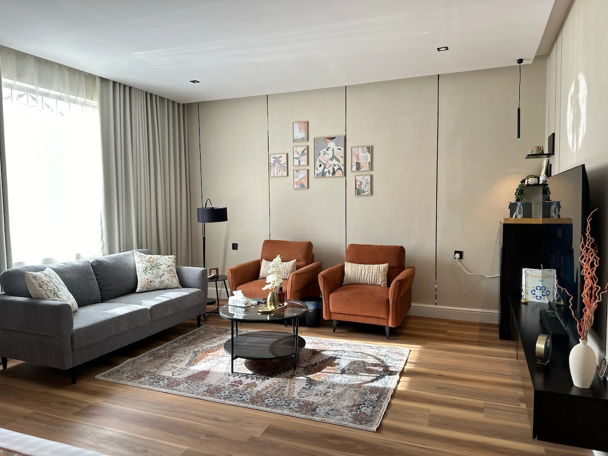 This unique place has a style all its own—designed to offer comfort, elegance, and a touch of luxury. Each room is thoughtfully furnished with chic décor and high-end finishes. Enjoy premium amenities including a Cinema VIPS experience, QLED flat-screen TVs, tea/coffee machines, hair dryers, plush towels, and a complimentary welcome pack. Whether you're here for a short getaway or a longer stay, you'll feel right at home with our modern comforts and personalized touches.