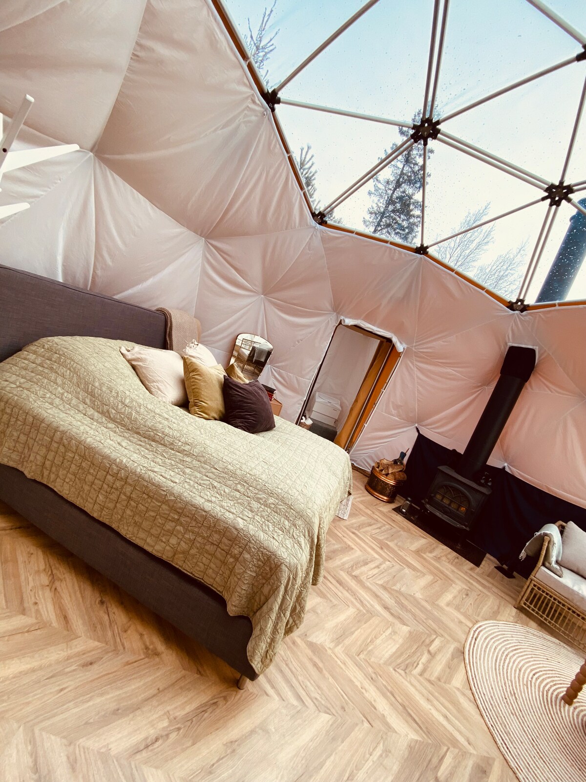 Sleep under the stars in a private glass igloo with panoramic views of Stjørnfjorden, Trondheimsleia and all the way to Hitra. Here you live all alone, surrounded by forest, fjord and open sky – perfect for couples who want peace, proximity and a completely unique nature experience. On clear nights, you can experience the starry sky and the northern lights right from the bed. The igloo is heated and comfortable, giving the feeling of hovering over the landscape. This is not just an overnight stay – it is an experience you will remember for a long time.