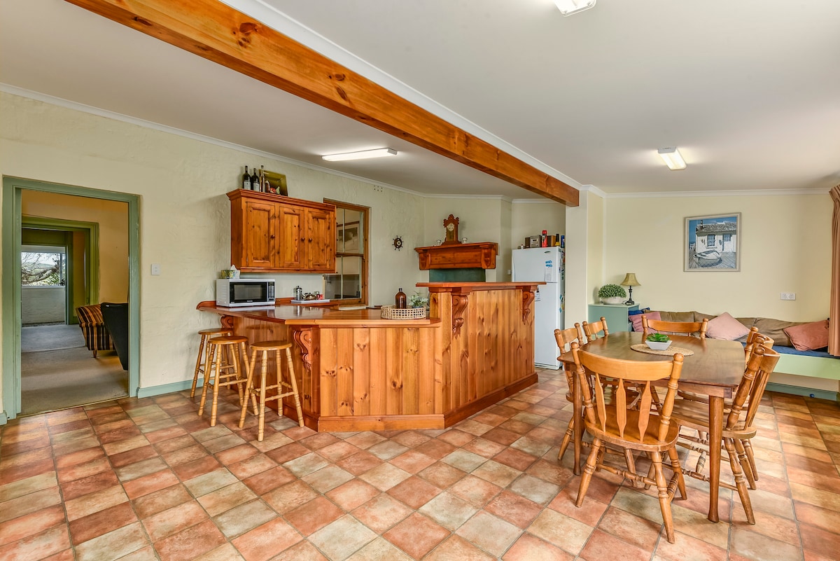 Williamstone Cottage is located near gorgeous Long Beach . This beautiful old limestone cottage has been created into a family beach retreat. There are 3 bedrooms configured as one queen bedroom, a king bedroom and a third bedroom with two singles. All beds will be made with linen and bath towels provided. Wi-Fi is provided, your dog is very welcome with the backyard fully fenced.