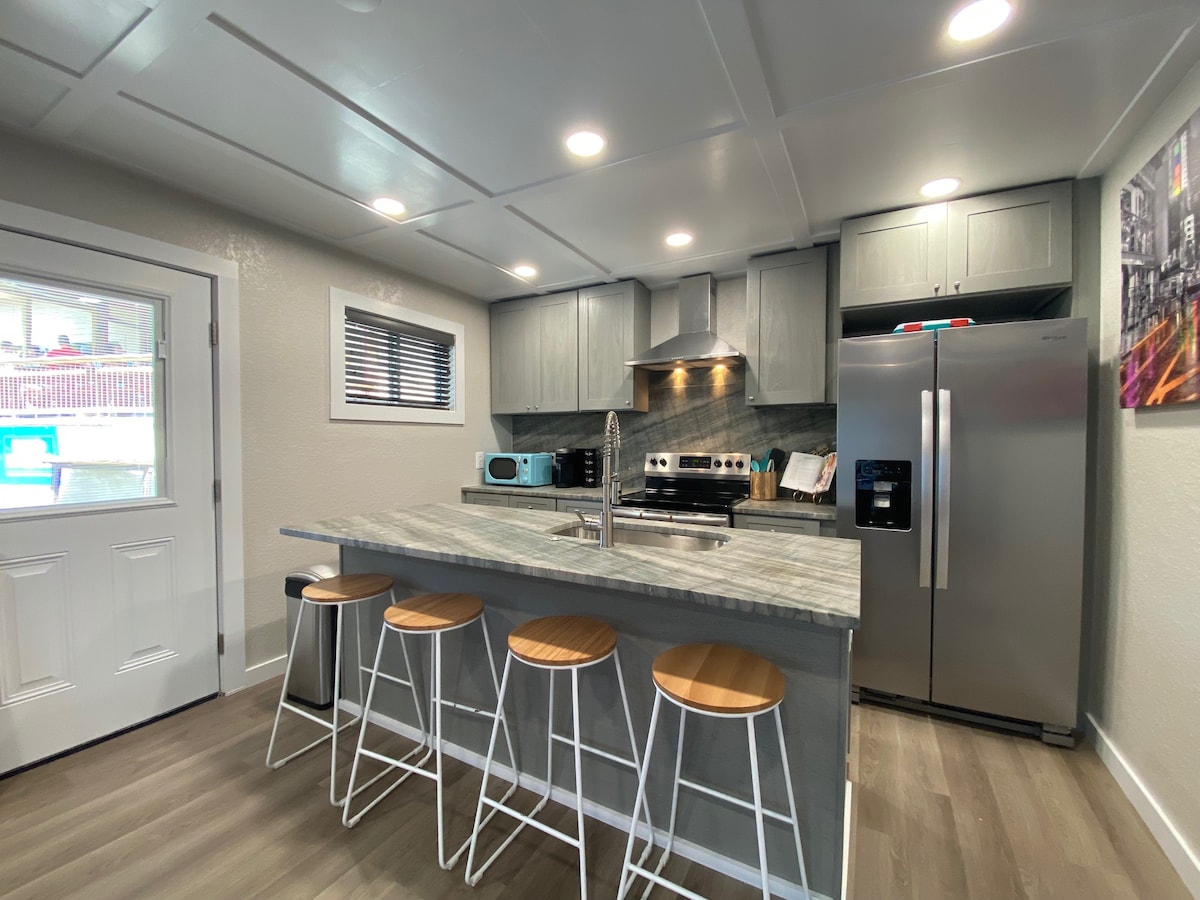Our remodeled lake cottage sits on a quiet cove that overlooks beautiful Lake Hamilton. The WindWalker greets you with relaxing vibes and a serene decor of blues and grays. Sitting out on the deck at night surrounding the fire pit and looking out over all of the lights on the lake is mesmerizing. The cottage is in a quiet residential neighborhood, yet it is just minutes from the shopping, dining, and tourist attractions that Hot Springs, Arkansas has to offer.